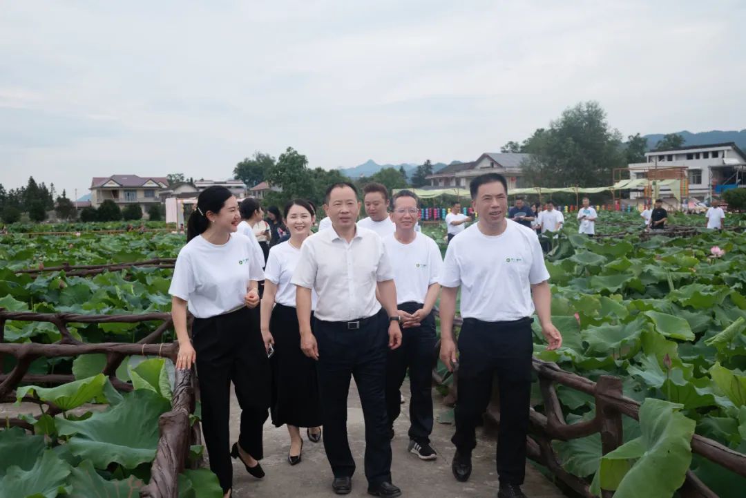 在水东镇调研千工坝除险加固工程的溆浦县委书记郑湘随后来到辞海故里怀仁荷花生态康养园,在林承雄董事长的陪同下考察指导工作。