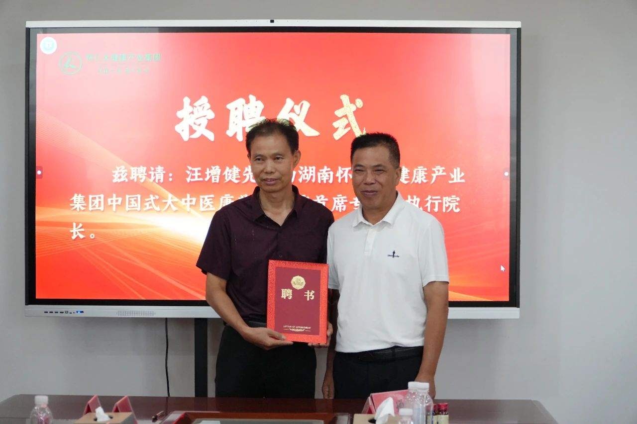 接下来,由林承雄董事长授聘书,聘请汪增健先生为湖南怀仁大健康产业集团中国式大中医康养研修院首席专家兼执行院长,林谷文先生为湖南怀仁大健康产业集团中国式大中医康养研修院顾问。
