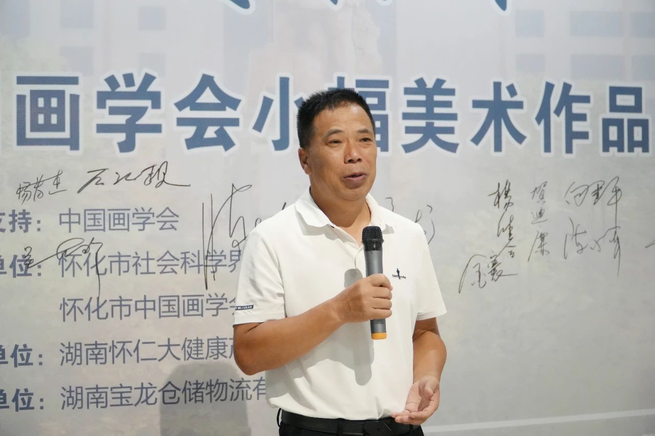 8月8日上午,由怀化市社会科学界联合会、怀化市中国画学会主办,湖南怀仁大健康产业集团有限公司承办,湖南宝龙仓储物流有限公司协办的“大美怀仁”——怀化市中国画学会小幅美术作品捐赠展在学会展览馆进行展出,怀化市人大常委会副主任向建平出席并宣布展览开幕。怀化市人大常委会委员、怀仁大健康产业集团董事长林承雄参加开幕式并致词。