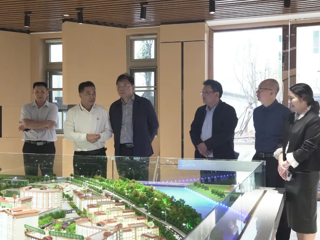 图/湖南省民政厅党组成员、副厅长蒋建华一行参观怀仁五调康养园展厅,了解园区各服务板块