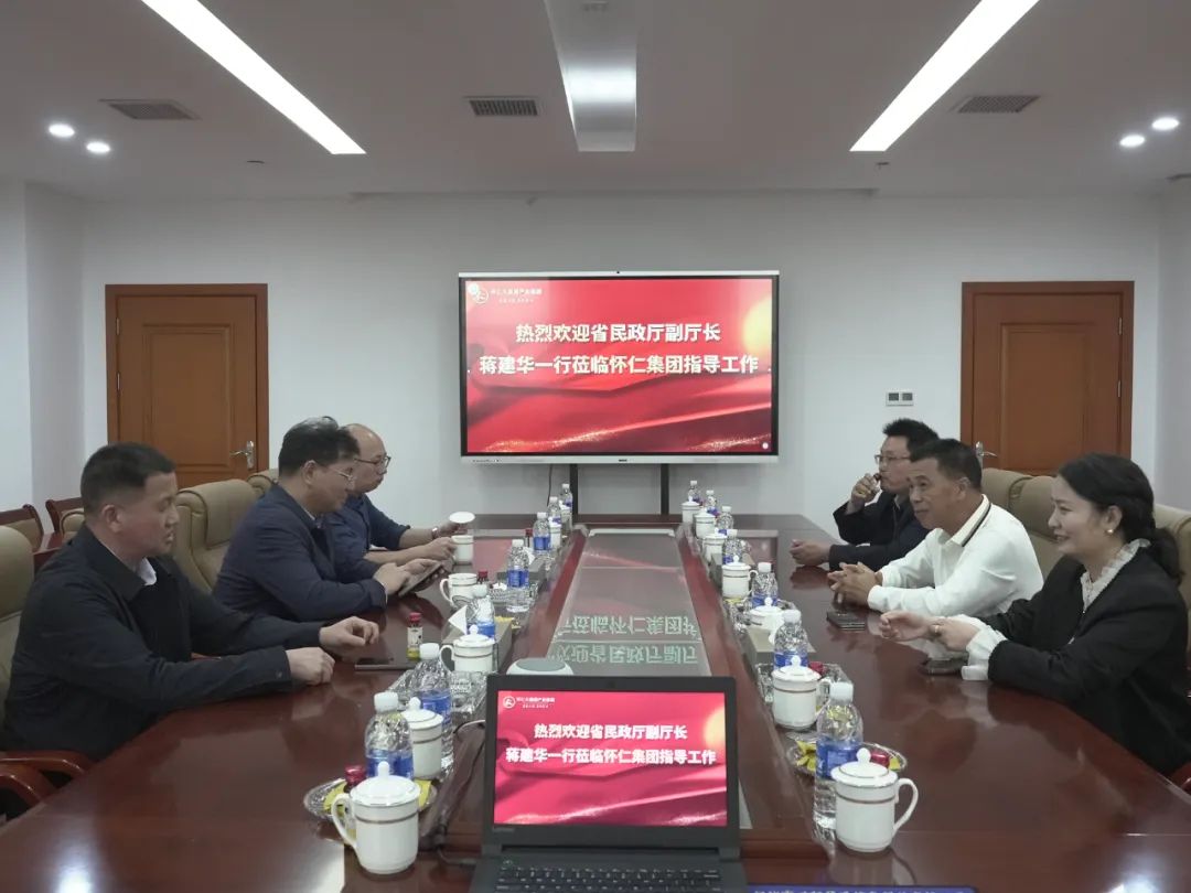 10月17日,湖南省民政厅党组成员、副厅长蒋建华,省民政厅办公室二级调研员陈志刚 ,怀化市民政局党组副书记、副局长赵顺涛,市民政局党组成员、副局长欧阳永久一行莅临ayx爱游戏(中国)官方网站-登录入口调研指导。湖南怀仁大健康产业集团董事长兼总裁林承雄、集团副总裁兼五调康养事业部总经理刘小群作热情接待。