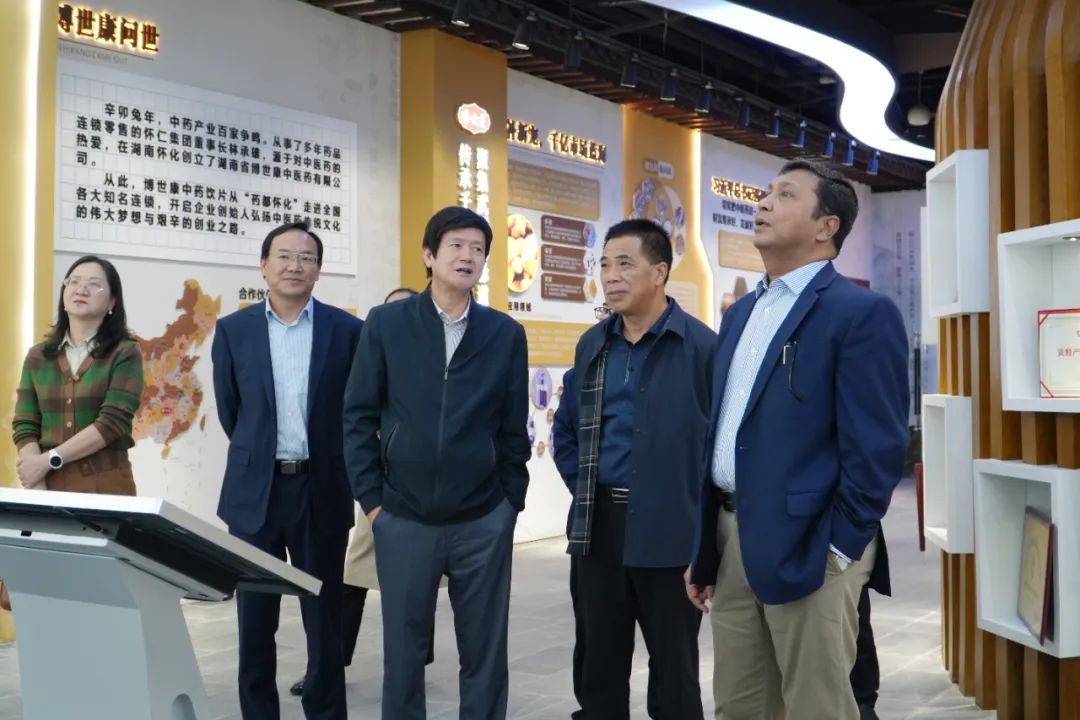 Iqbal院士一行参观了博世康黄精智慧展厅、五调康养苑、五调康养酒店式康养中心,对ayx爱游戏(中国)官方网站-登录入口旗下的怀仁康养、博世康中医药的产业规划有了一定的了解。在博世康展厅,一行人品尝了博世康黄精枸杞原浆、即食黄精、黄精茶,对九蒸九制黄精的独特口感和香气连连称赞,表示这是怀化地区非常有特色食药同源产品,味道不错。