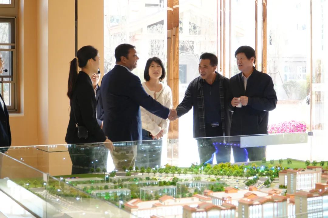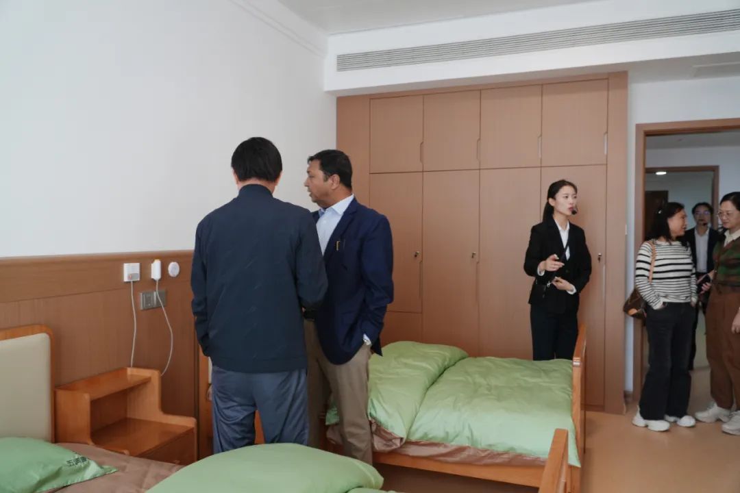 在五调康养苑,一行人通过建筑模型了解园区各服务板块,同时,Iqbal院士和刘新民教授详细考察了房间的适老化设备、参观长者活动室,并听取讲解员介绍怀仁康养战略定位——“中国式大中医康养引领者”,将秉持“文创品牌先行、教育培训引领、健康管理抓手、产业综合支撑”的战略纲领,致力于构建一个集医药、医疗、医养于一体的新型康养综合体。