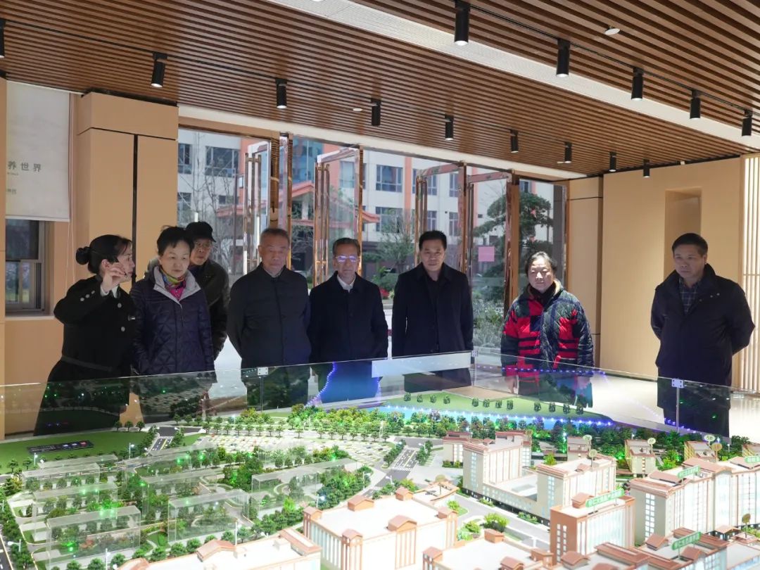 图/陈志强一行实地察看五调康养苑适老化的样板间及功能齐全的配套服务设施