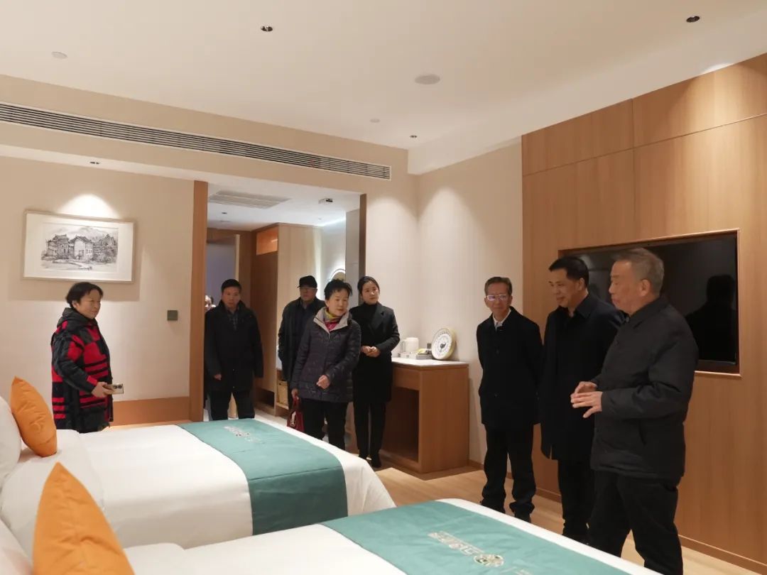 图/陈志强一行实地察看康养酒店独具特色的服务设施与服务品质