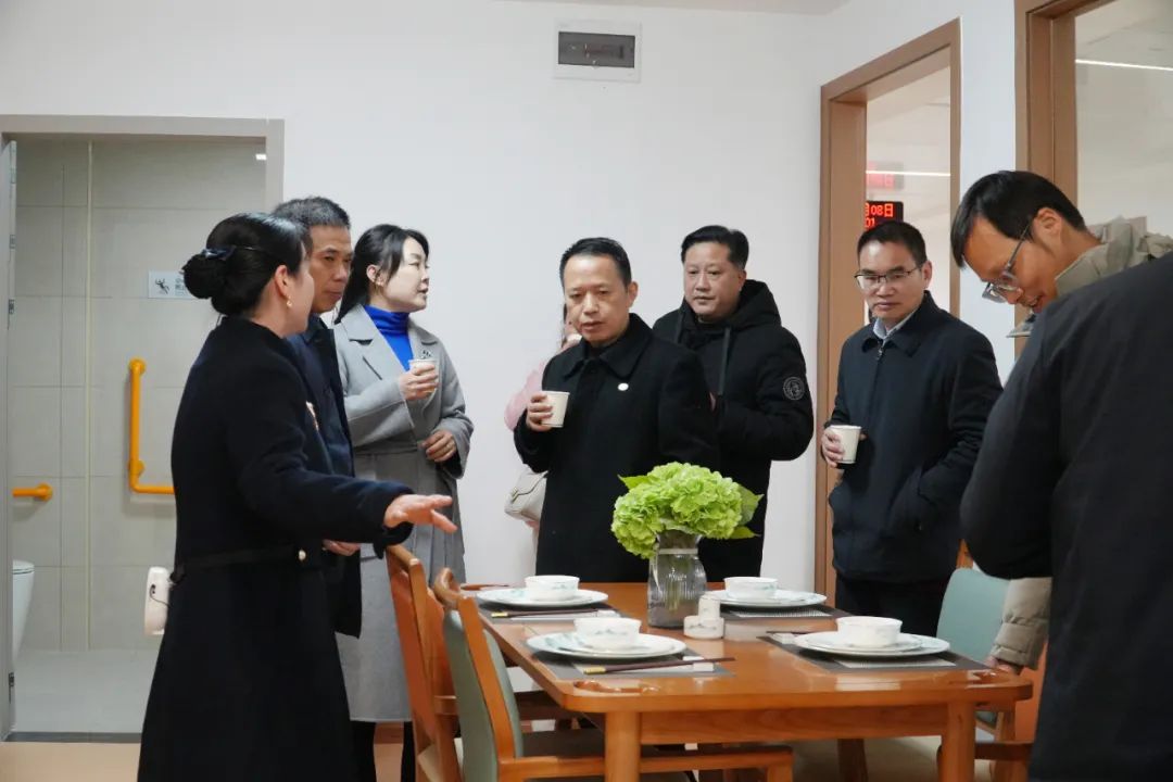 李为副主席一行参观了康养苑的起居室、综合活动室、功能室、阅读室、太极瑜伽练功房、乐器室、健身房等对“恒温、恒湿、恒洁、恒氧、恒净”五恒系统融入康养苑的创新做法给予充分肯定,对高标准高投入的建设品质非常认可。