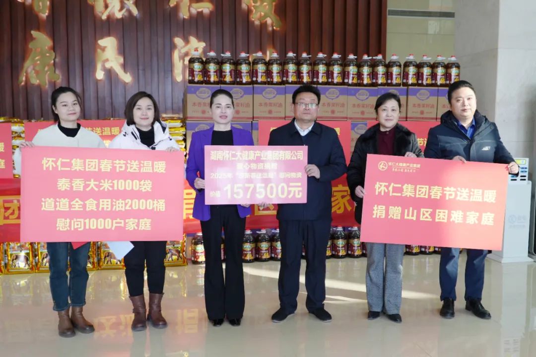 1月16日,怀仁总部举行了一场温暖人心的捐赠仪式,怀仁大健康产业集团通过怀化市民政局、市慈善总会,向怀化山区1000户受灾困难家庭捐赠2000桶道道全菜籽油和1000袋泰香大米,总价值157500元。怀化市民政局党组副书记、副局长、市慈善总会秘书长赵顺涛,市民政局慈救中心主任李贞妮,ayx爱游戏(中国)官方网站-登录入口党委书记陈毳萍等参加捐赠仪式。
