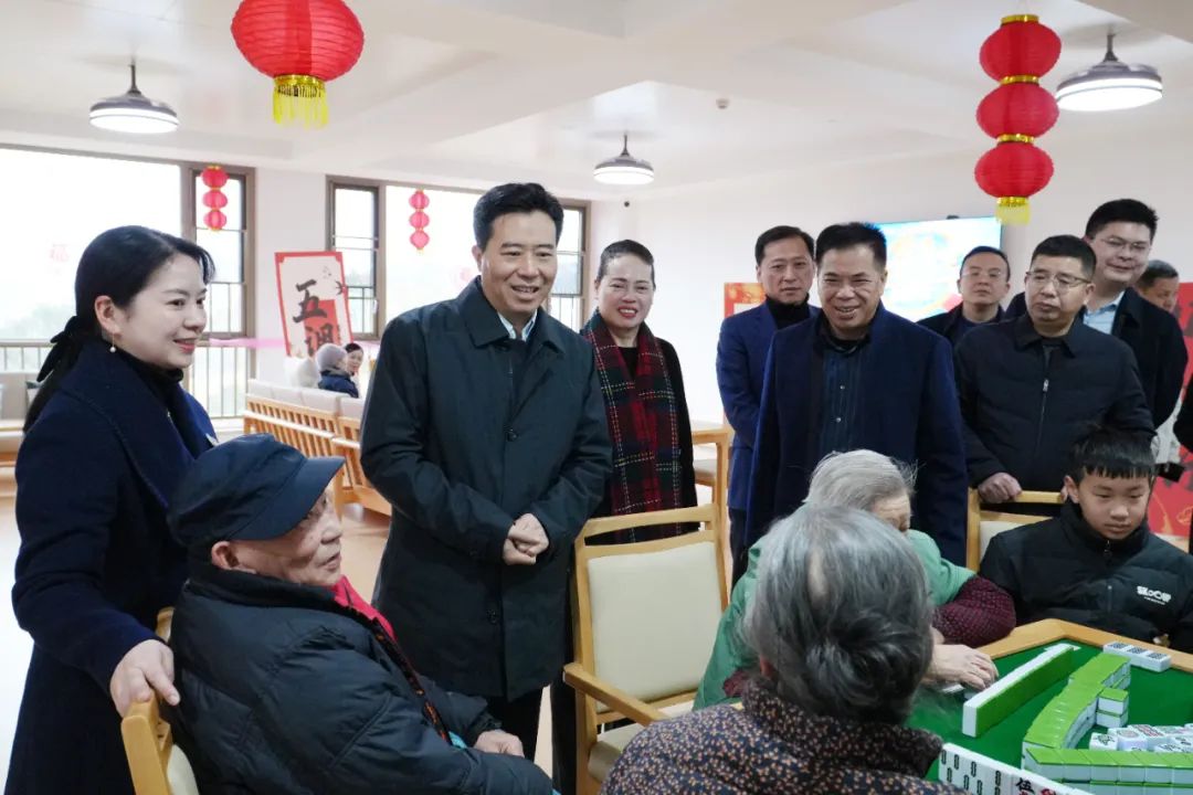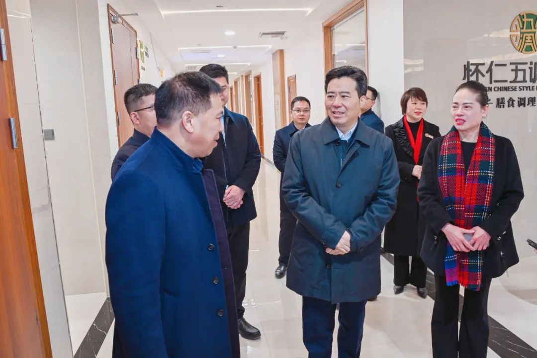 2月10日下午,怀化市委副书记、市长黎春秋来到怀仁五调康养园调研。市人民政府秘书长马源、鹤城区区长郑明明、市发改委主任石政懿、市财政局局长李清菊、市工信局局长张松、市人社局局长张娟、市民政局局长曾庆于、市政府研究室党组书记肖从贵、市政府办副主任李怀、市政府督查室主任张杰、鹤城区副区长曾治国陪同调研。ayx爱游戏(中国)官方网站-登录入口董事长林承雄、党委书记陈毳萍作热情接待。