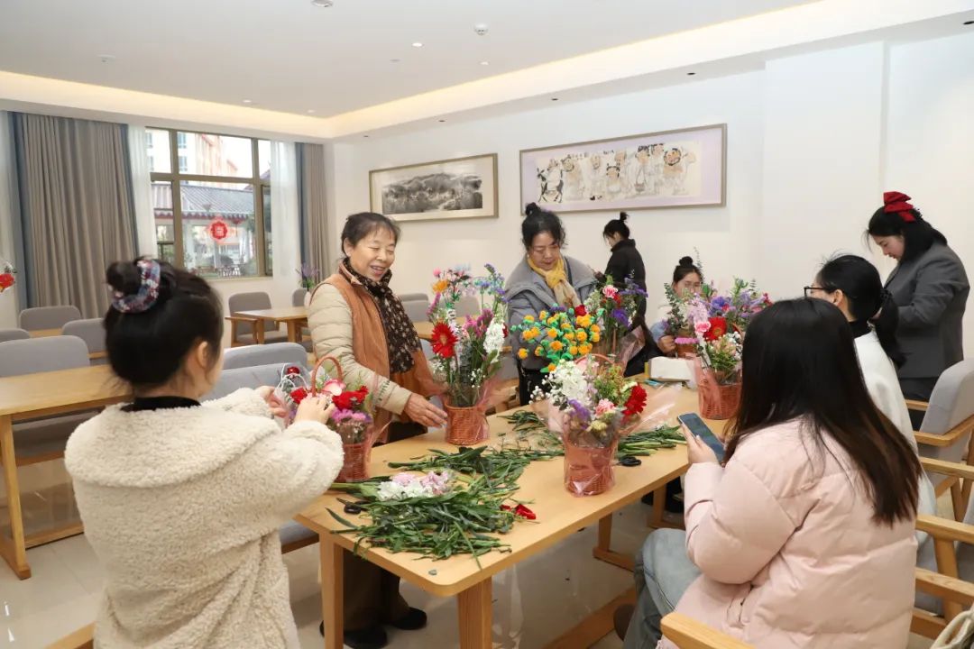 活动现场热闹非凡,欢声笑语不断。桃花朵朵开、美妙身姿踏步走、巧手接力叠纸杯、玩转活吃大灵蛇趣味游戏轮番上阵,大家热情高涨,积极参与,尽情享受着活动带来的快乐。公司还精心组织了插花手工DIY活动,大家充分发挥想象力,用灵巧的双手将多种花材有层次地搭配在一起,完成了一件件色彩缤纷、形态多姿的精美作品。